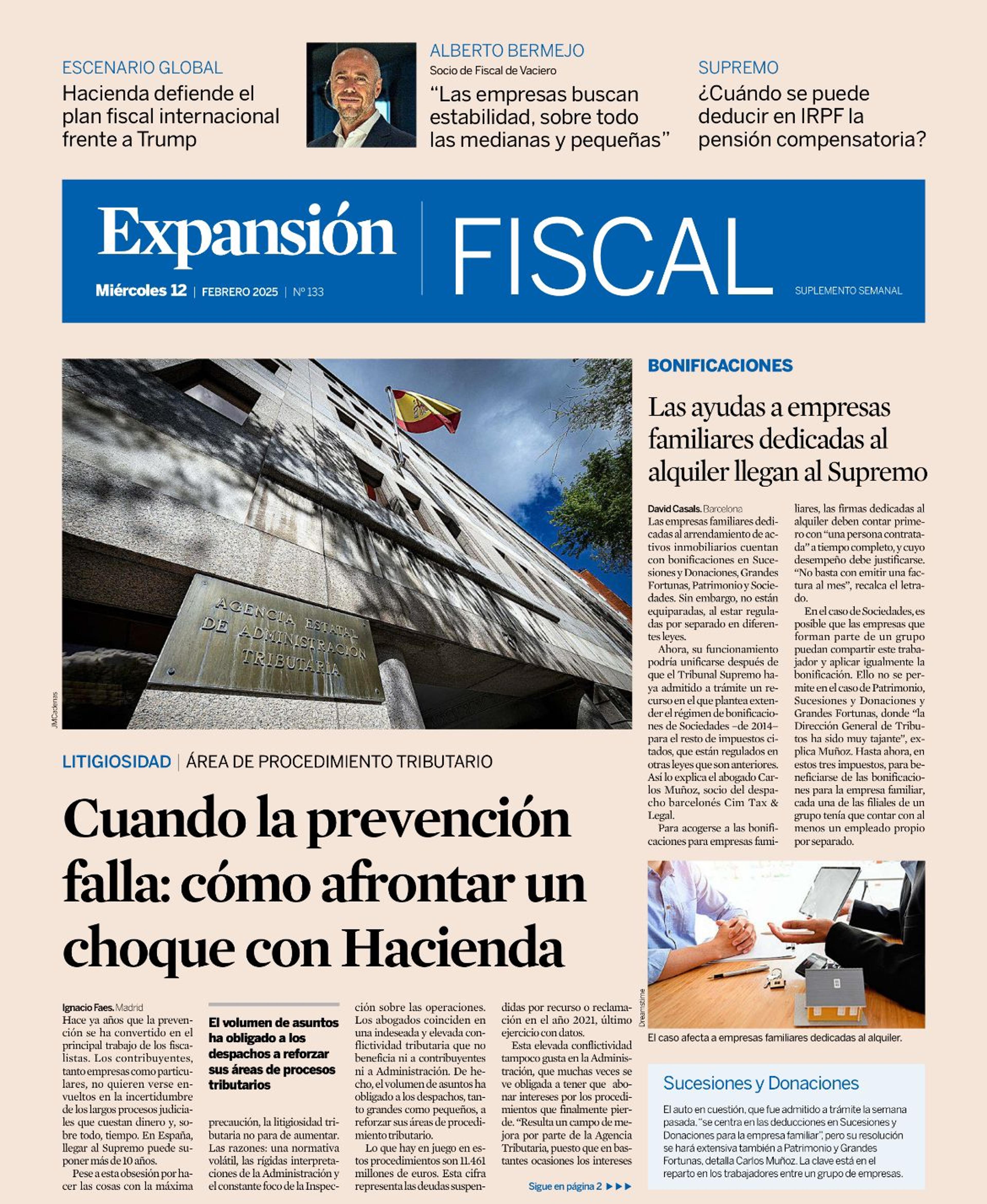 El 12 de febrero, Expansión publicó el artículo “Las ayudas a empresas familiares dedicadas al alquiler llegan al Supremo” de David Casals, en el que se aborda un tema de gran relevancia para los grupos de sociedades de empresas familiares con actividad de alquiler.